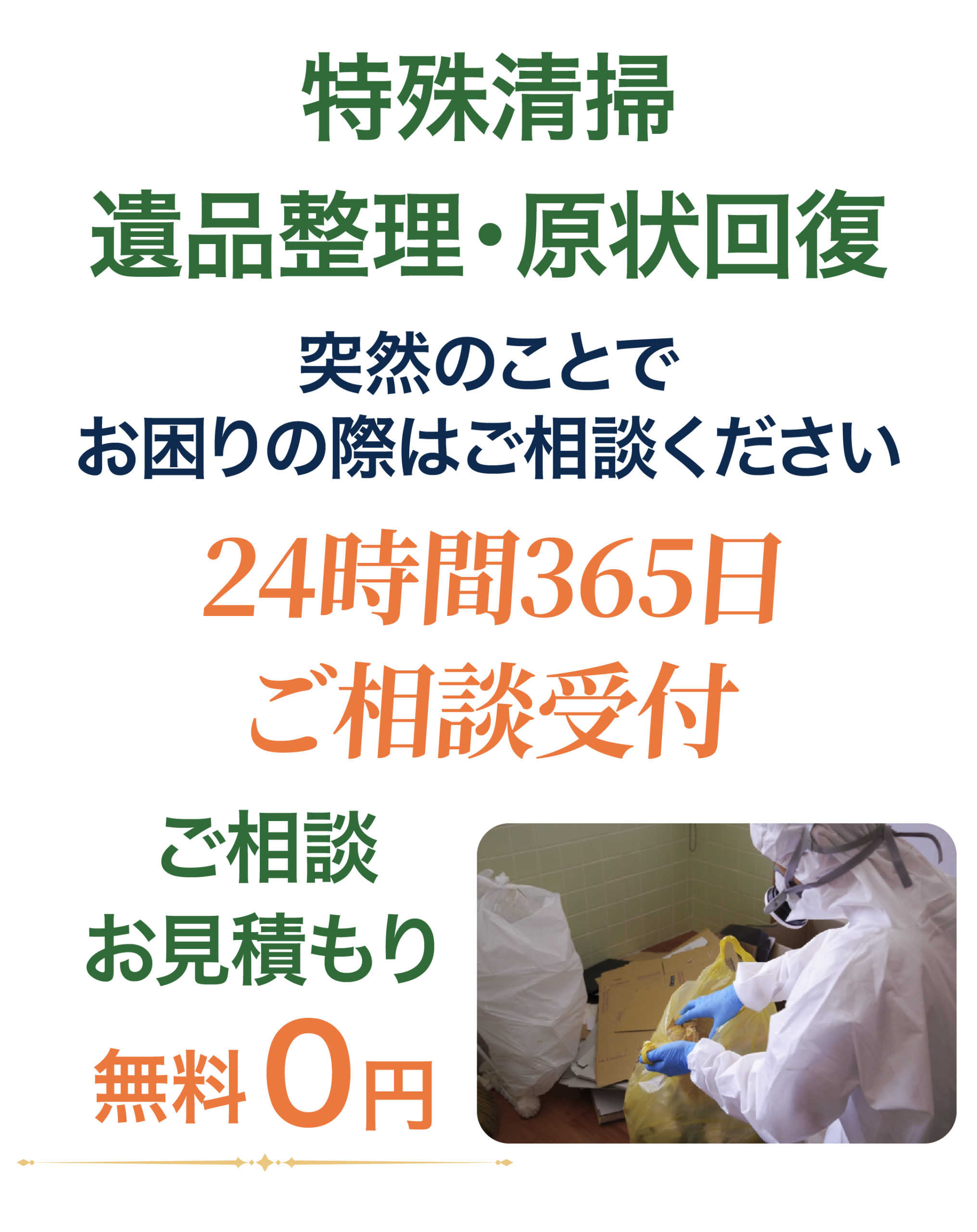 特殊清掃・遺品整理ならお任せください